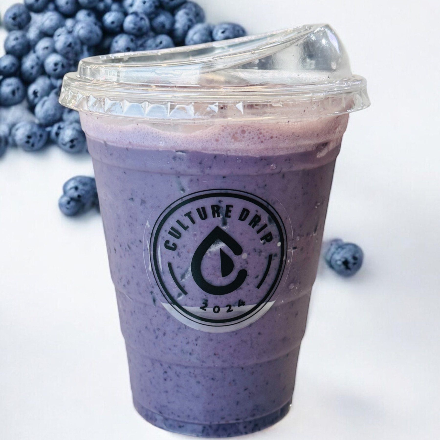 Sweet and slightly tangy blueberries blended into a refreshing, creamy, purple-hued beverage.