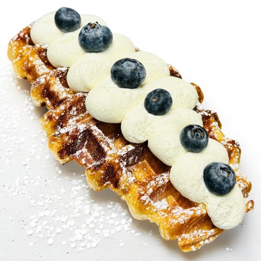 Our warm, crisp croffle topped with fresh blueberries