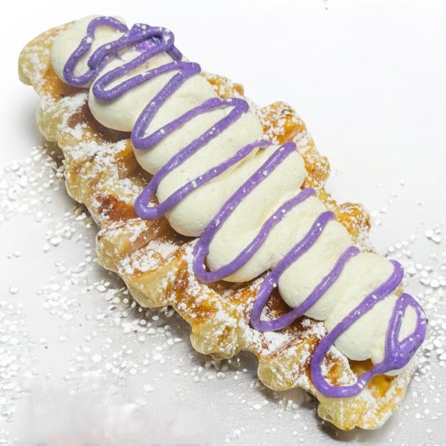 Our crisp croffle finished with a naturally sweet, earthy, and vibrant purple Ube drizzle